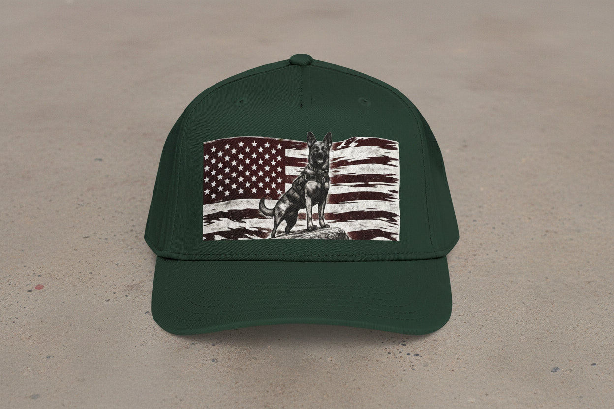 This mid-profile baseball cap carries a steady, understated strength. Featuring a worn American flag backdrop with a lone coyote standing firm on stone, the design captures that quiet, dusk-on-the-range feeling — confident, grounded, and built to endure.